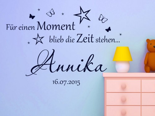 Wandtattoo ...blieb die Zeit stehen mit Name und DatumWunschgrößen: